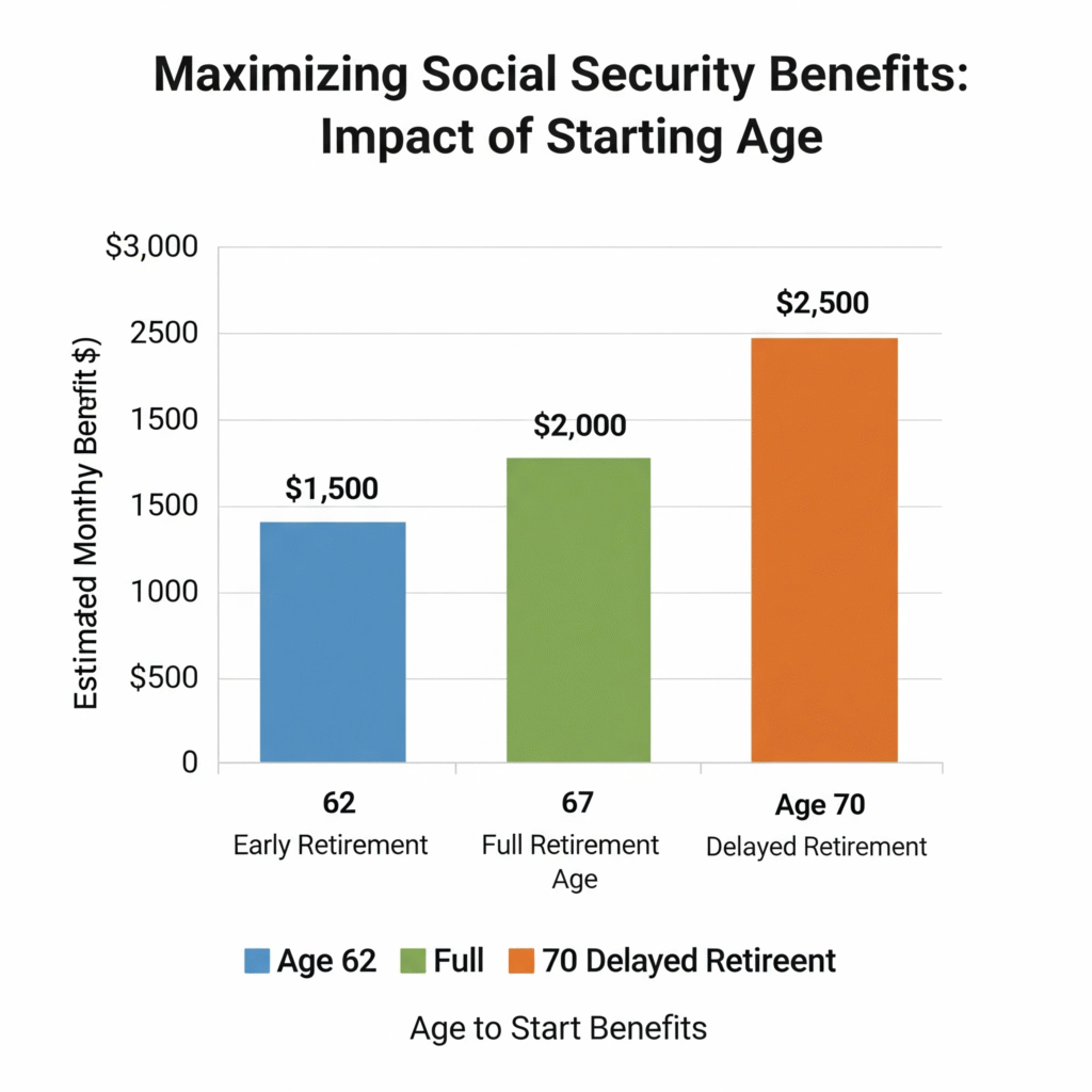 Delaying your claim increases your monthly payments by up to 8% per year. This strategy is ideal for seniors in good health who expect to live into their late 70s or beyond.